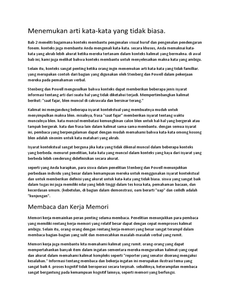 Menemukan arti kata-kata yang tidak biasa.: Membaca dan Kerja Memori