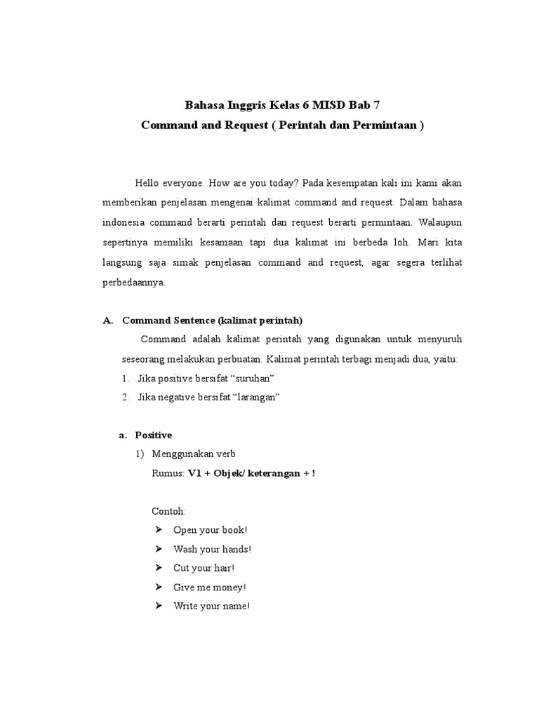 Contoh Kalimat Perintah Dan Permintaan Dalam Bahasa Inggris