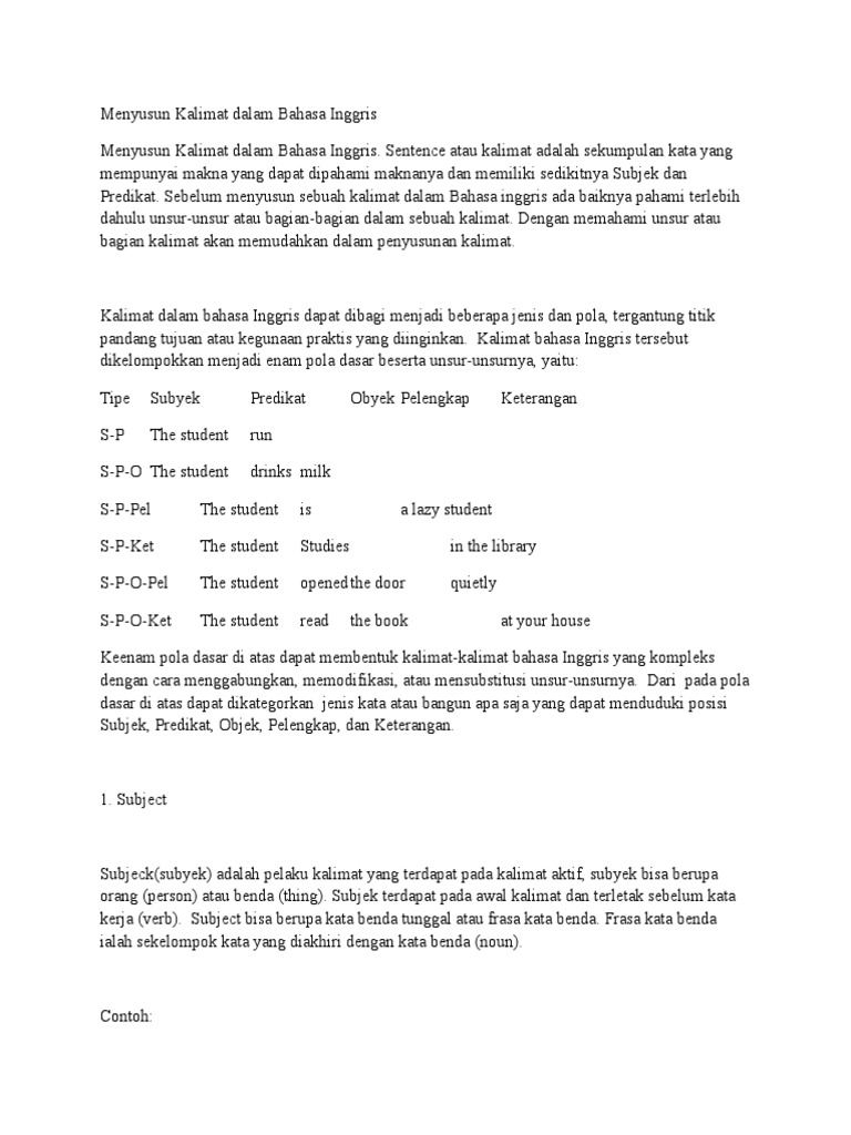 Contoh Kalimat Subjek Predikat Objek - Guru Ilmu Sosial