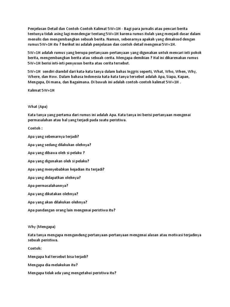 Contoh Pertanyaan 5w 1h Dan Jawabannya - Aneka Macam Contoh