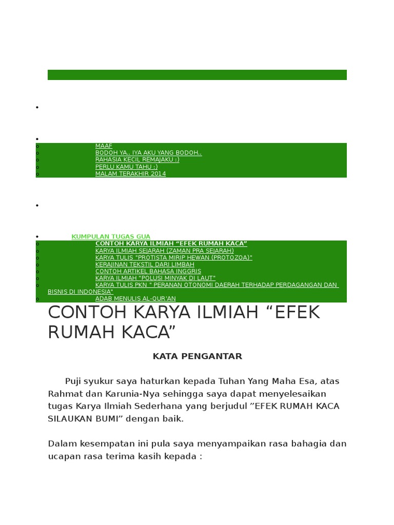 Contoh karya ilmiah “EFEK RUMAH KACA” | I NEVER GROW UP