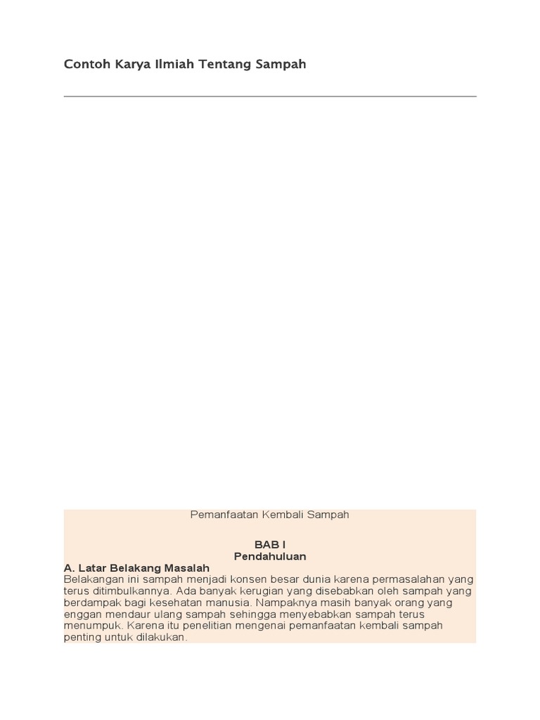 Contoh Karya Ilmiah Tentang Sampah: Bab I Pendahuluan A. Latar Belakang Masalah