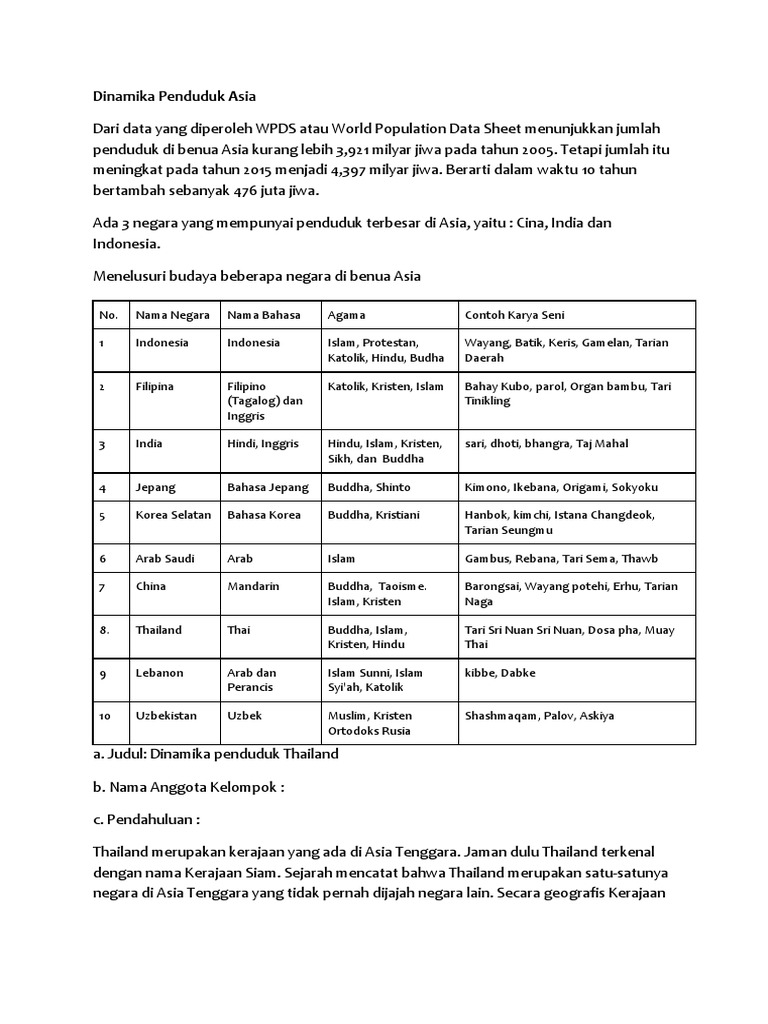 Dinamika Penduduk Asia