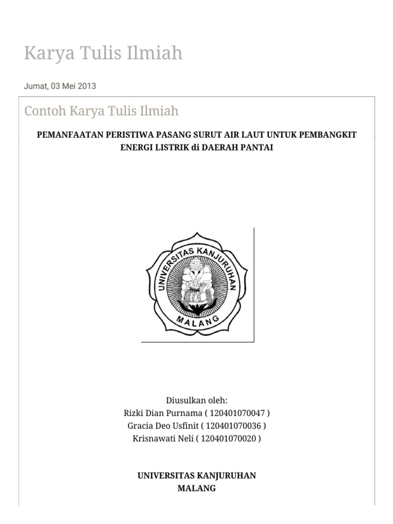 Contoh Makalah Karya Tulis Ilmiah Pdf - Awan Danny Media