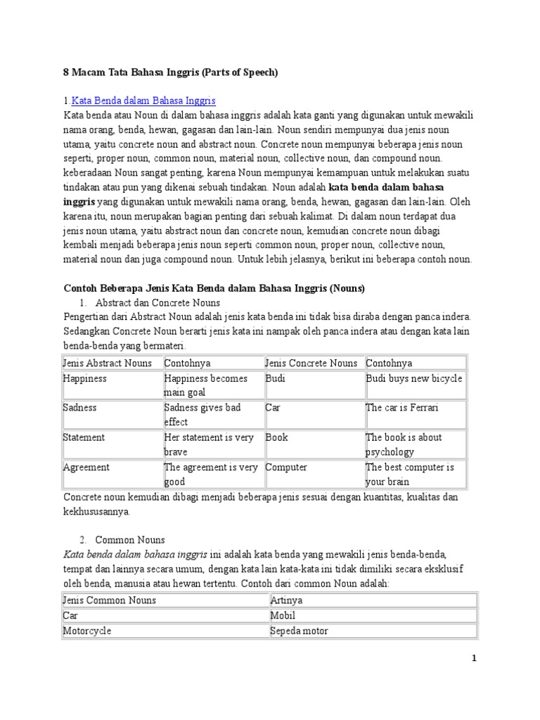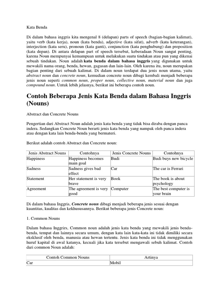 Contoh Kalimat Kata Benda - Definisi, dan Contoh B. Indonesia