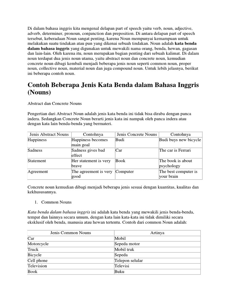 Penjelasan, Jenis, dan Daftar Kata Noun (Kata Benda) - Jagoan Bahasa Inggris