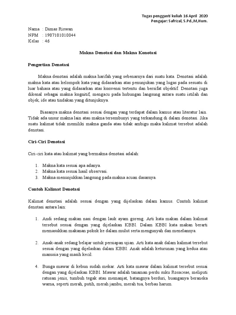 DOC) Contoh Kalimat Konotasi dan Denotasi | Bastian Lewar - Academia.edu