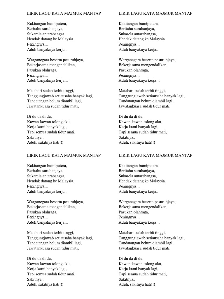 Lirik Lagu Kata Majmuk Mantap