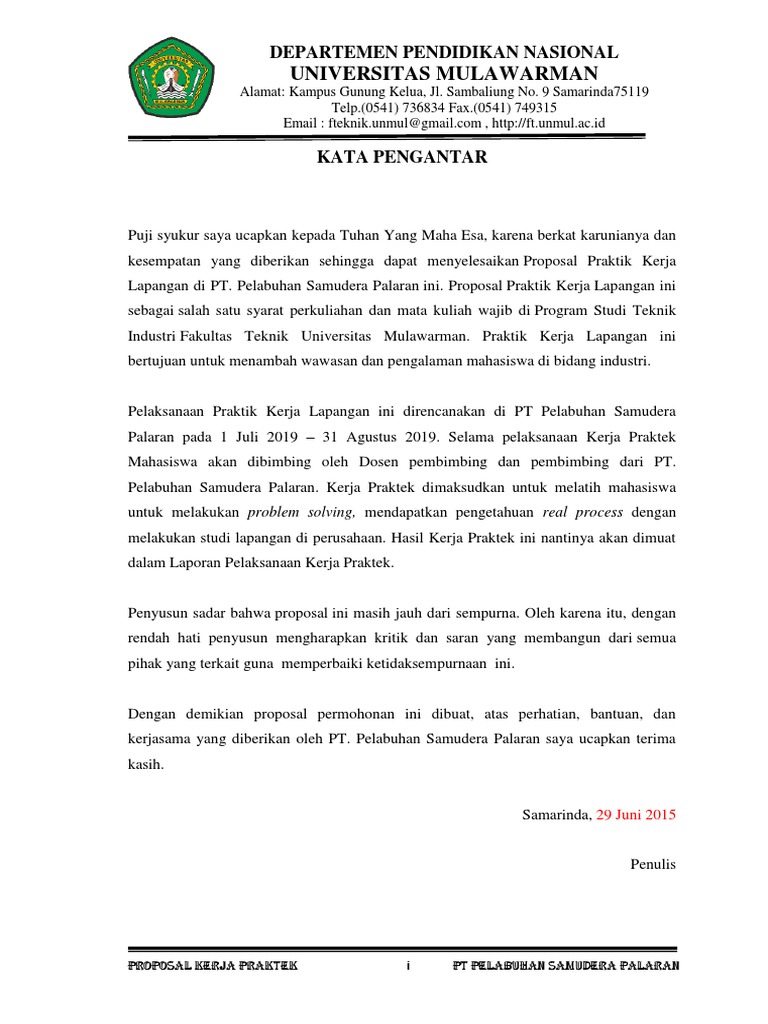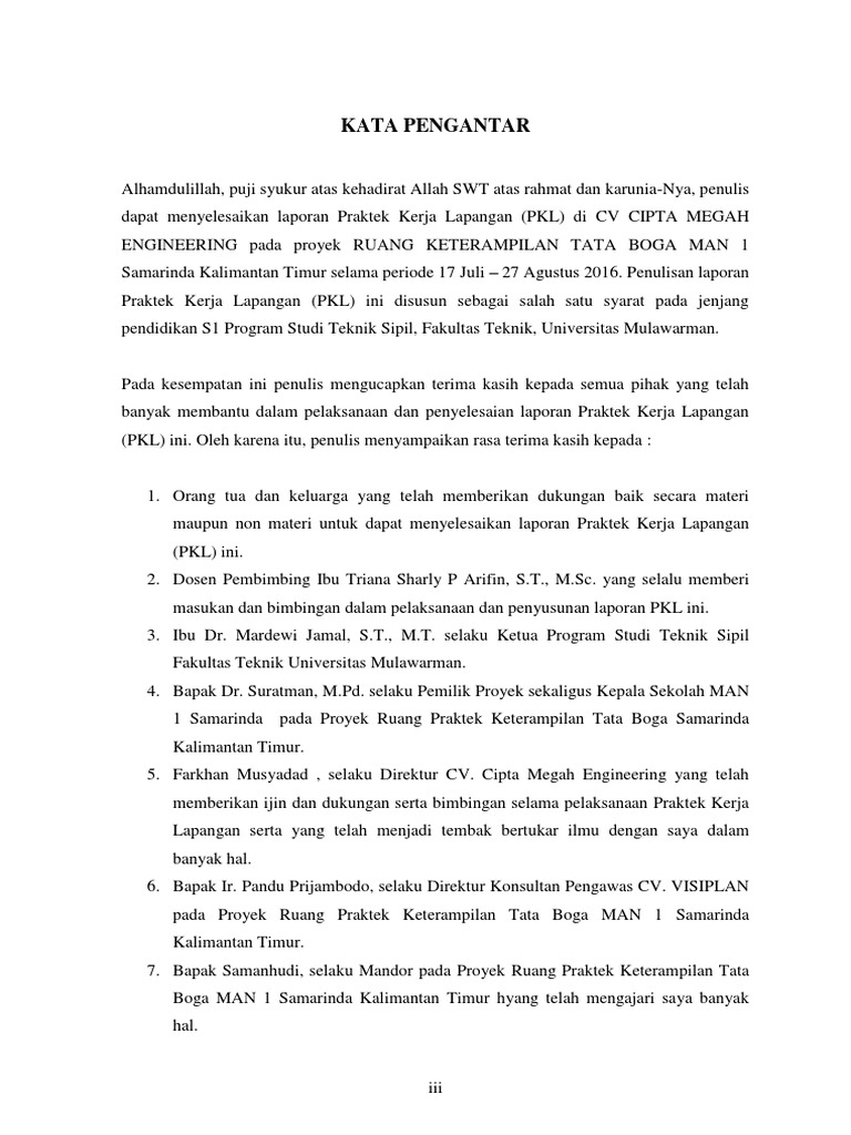 Contoh Kata Pengantar Laporan PKL Yang Sesuai Dengan Ketentuan