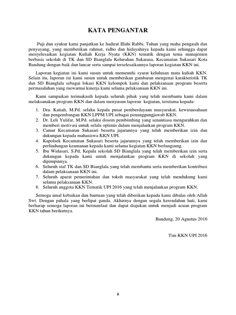 Contoh Kata Pengantar Laporan Yang Baik 2016