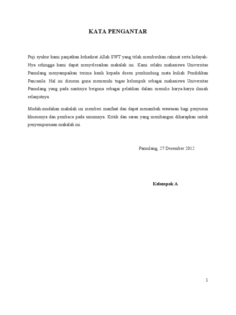 Contoh Kata Pengantar Makalah Pendidikan Pancasila
