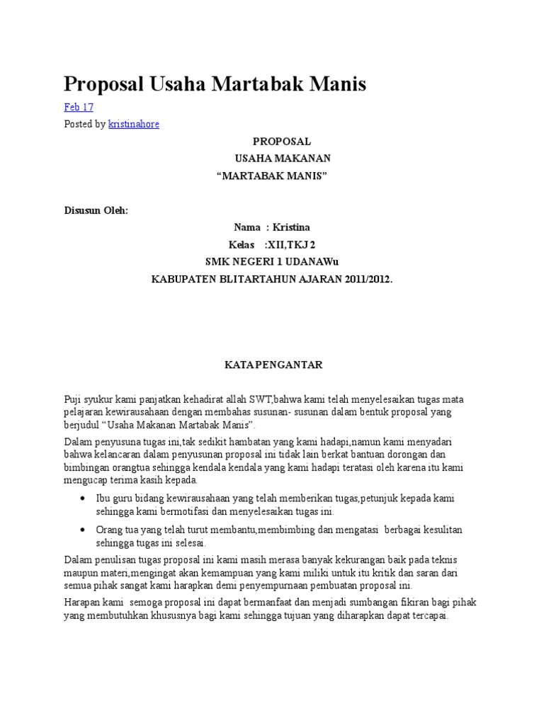 kata blog: Contoh Kata Pengantar Proposal Usaha Makanan