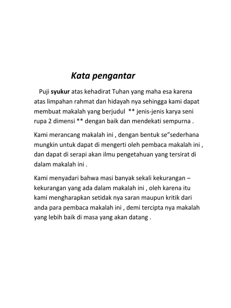 Makalah Seni Rupa - Kata Pengantar Puji syukur kami panjatkan kehadirat Allah SWT yang telah memberikan rahmat serta karunia-Nya kepada kami sehingga | Course Hero