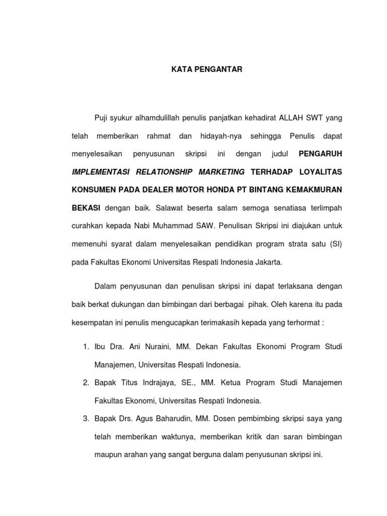 DOC) Contoh Kata Pengantar Skripsi Mahasiswa | dewi Itasari - Academia.edu
