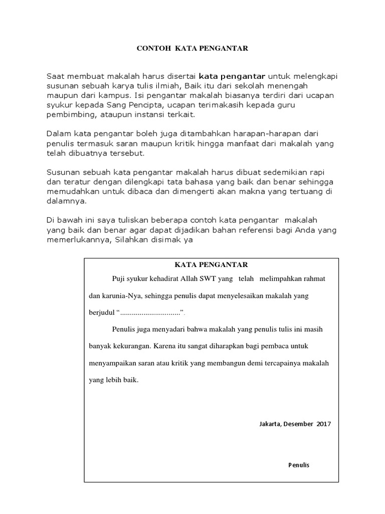 PDF) Contoh Kata Pengantar Makalah Terbaik | tommy syatriadi - Academia.edu