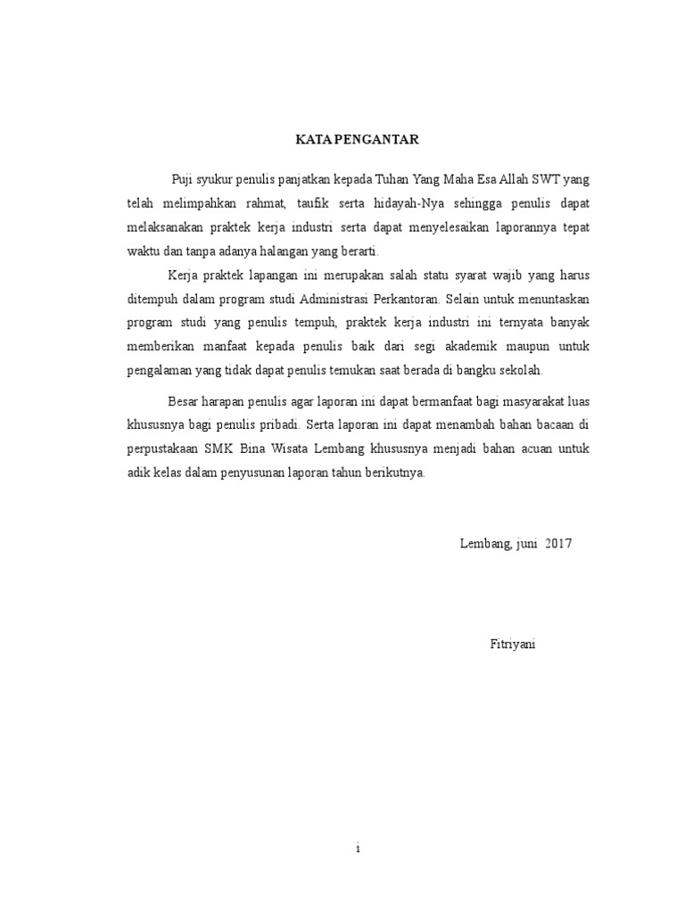Kata Pengantar Laporan Pkl - Qurhadee.com