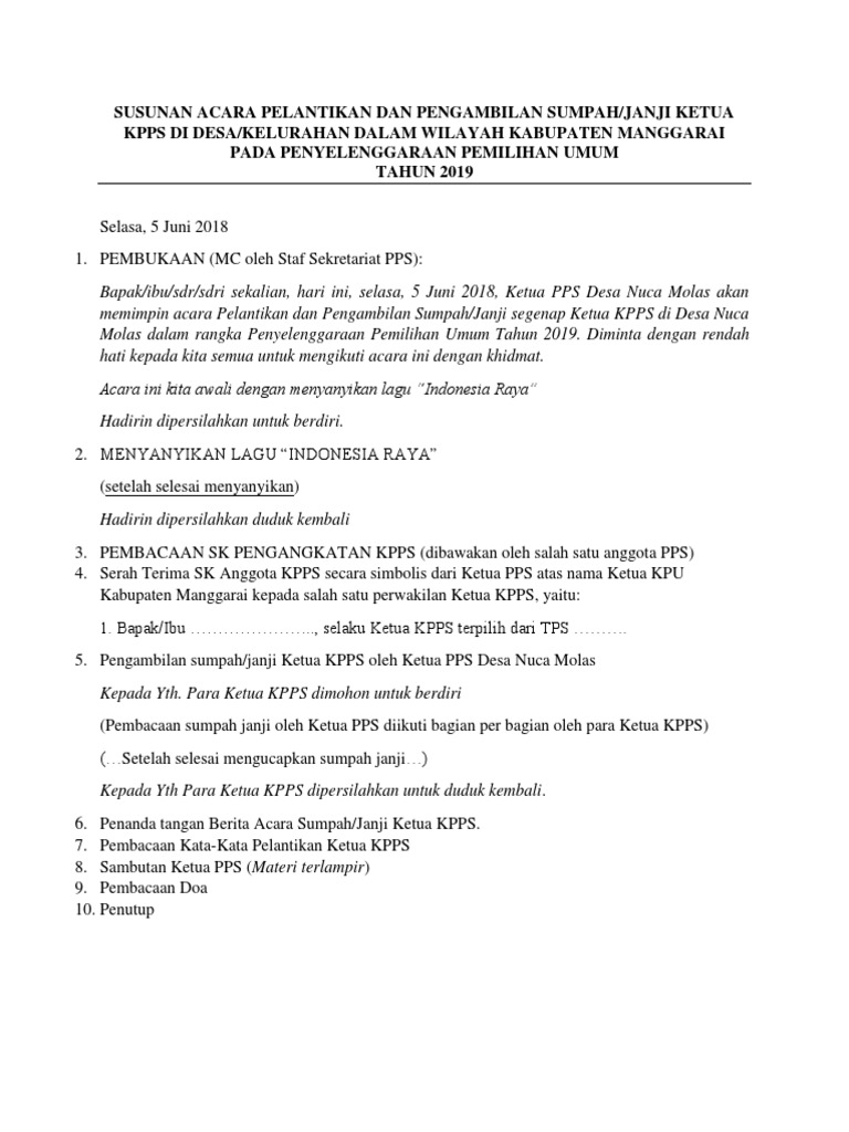 Susunan Acara Pelantikan Dan Pengambilan Sumpah Kpps