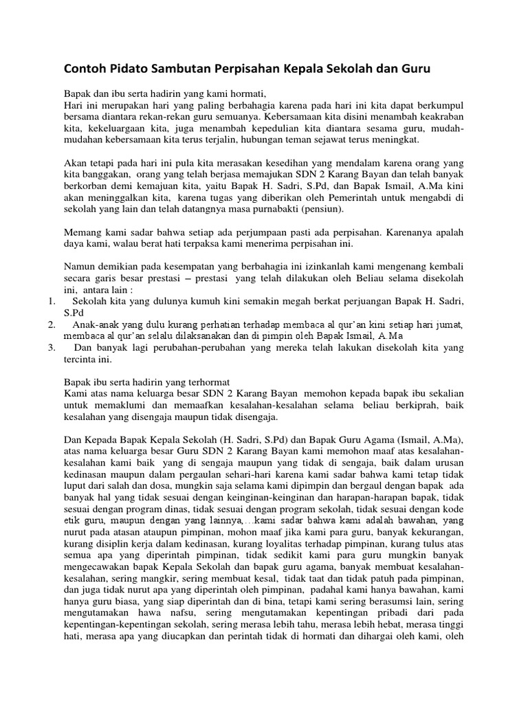 Contoh Sambutan Kepala Sekolah Untuk Perpisahan Dan Berbagai Acara - Contoh Surat