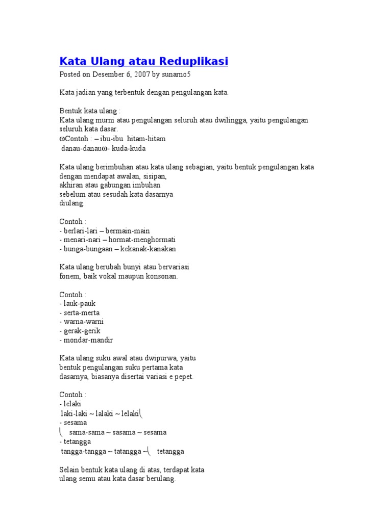 Pengertian Dan Contoh Kata Ulang Lengkap