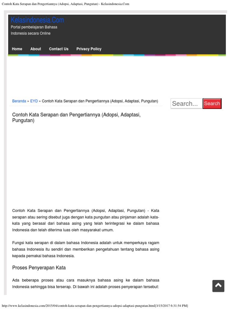 Contoh Kata Serapan Dan Pengertiannya (Adopsi, Adaptasi, Pungutan) - Kelasindon