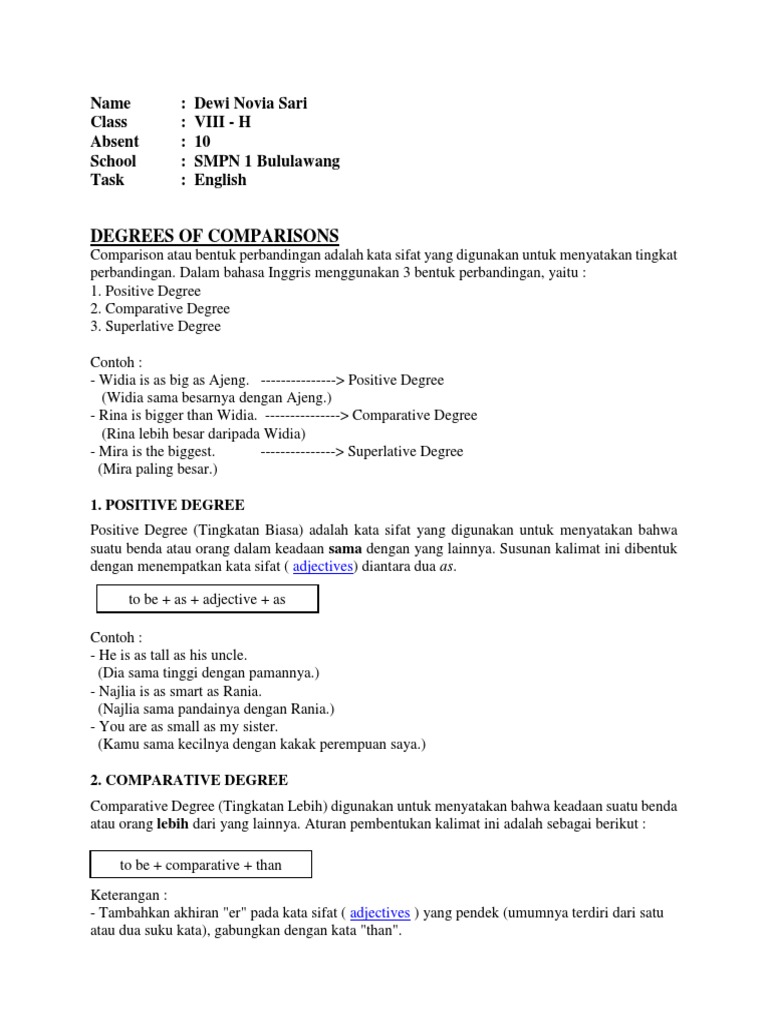 Tugas bahasa inggris pengertian, bentuk dan contoh degrees of compari…