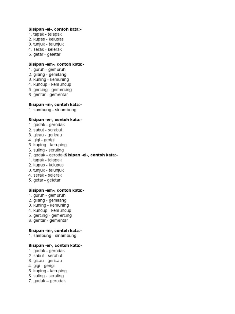 Contoh Imbuhan Sisipan Tahun 5