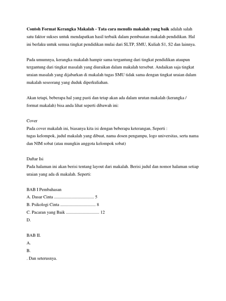 DOC) Contoh Kerangka Makalah » Contoh Format Makalah Contoh Kerangka Makalah Berikut adalah Contoh Kerangka Makalah yang baik | Margaretha Rosari - Academia.edu