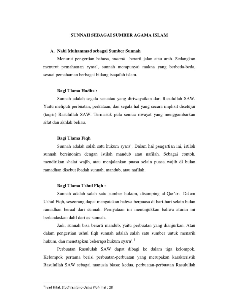 Makalah Metode Studi Islam Tentang Sunnah Sebagai Sumber Agama Islam