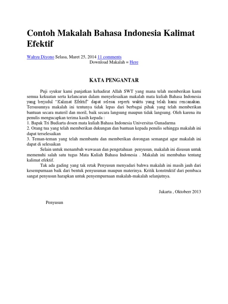 Contoh Makalah Bahasa Indonesia Kalimat Efektif Pdf - Awan Danny Media