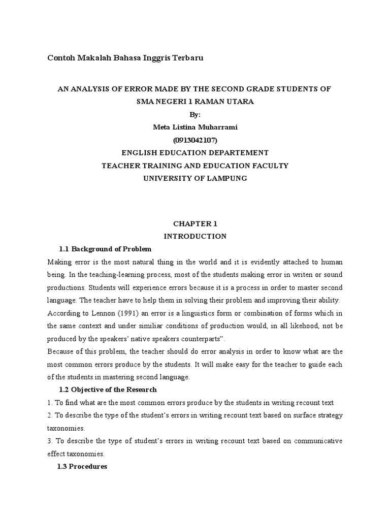 Contoh Skripsi Bahasa Inggris | Contoh Soal Dan Materi Pelajaran 10