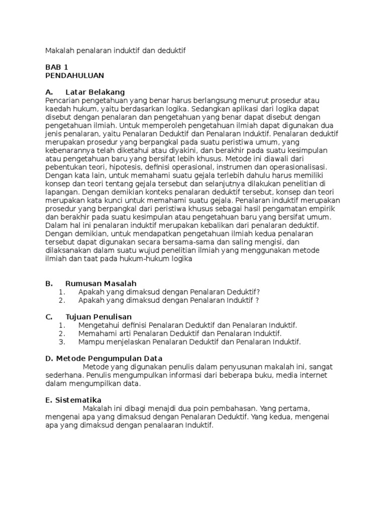 Makalah Bahasa Indonesia Tentang Paragraf Induktif Dan Deduktif - Contoh Makalah