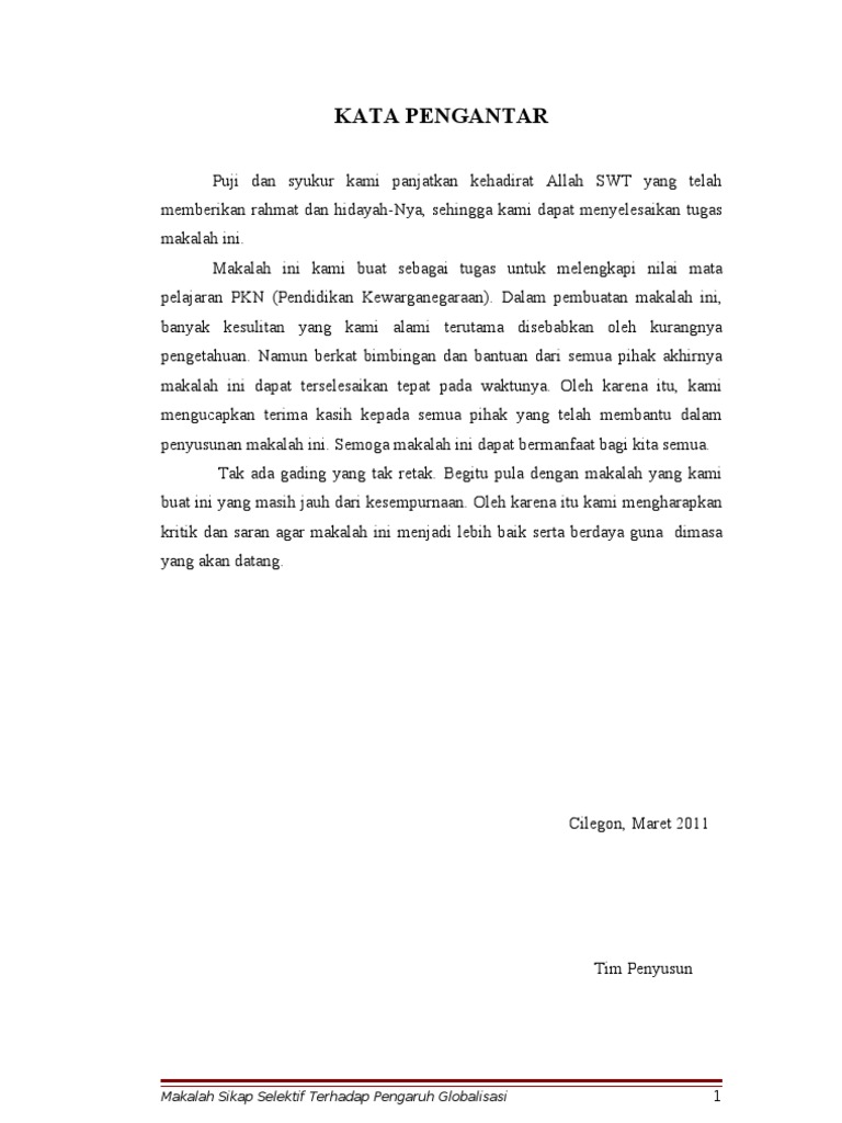 Contoh Makalah Globalisasi PKn Pendidikan Kewarganegaraan - CONTOH DOCS