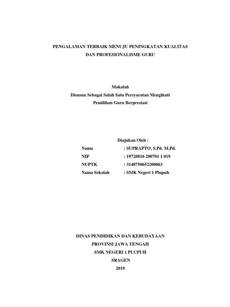 DOC) Contoh Makalah Guru Berprestasi | eka lampag - Academia.edu
