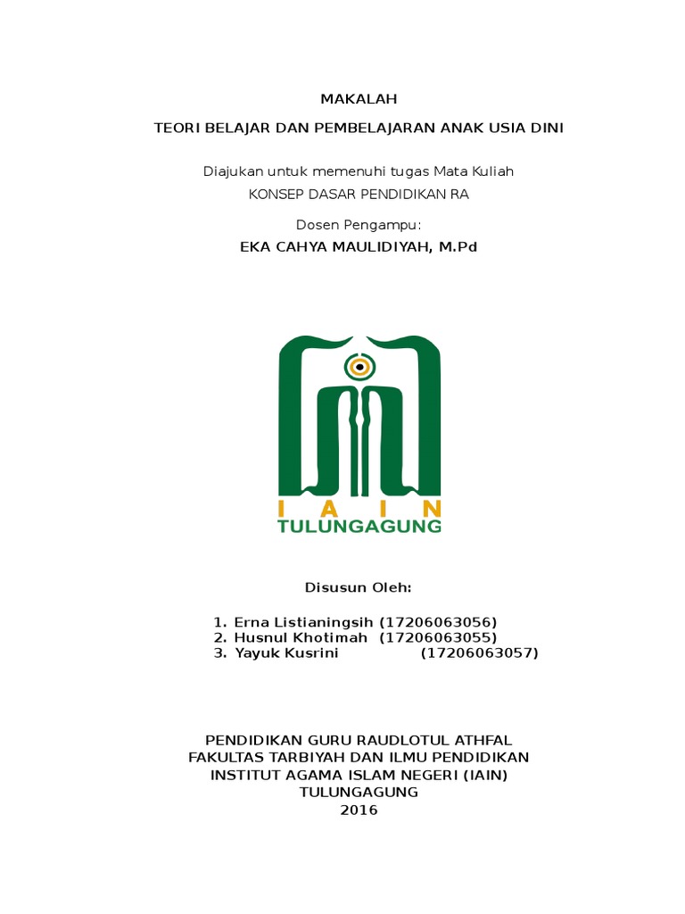 Makalah Teori Belajar Dan Pembelajaran Anak Usia Dini