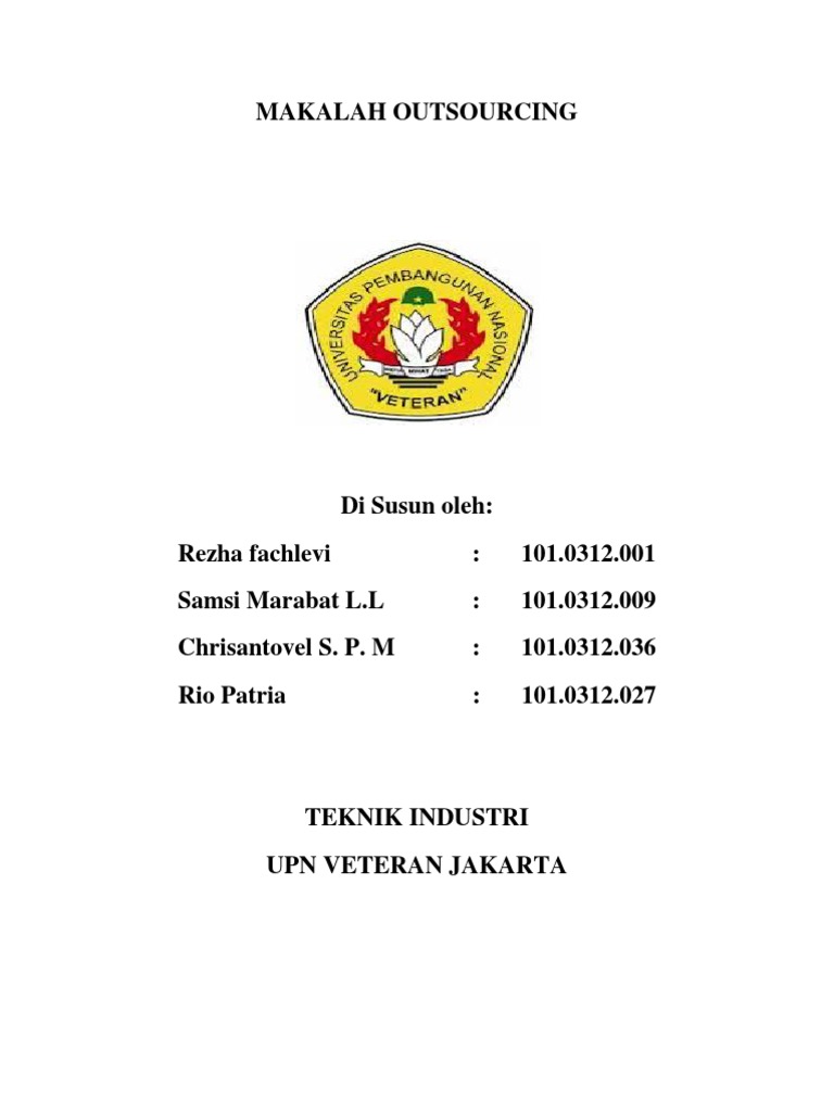 DOC) BAB I PENGERTIAN OUTSOURCING | Trissumar Nofa - Academia.edu
