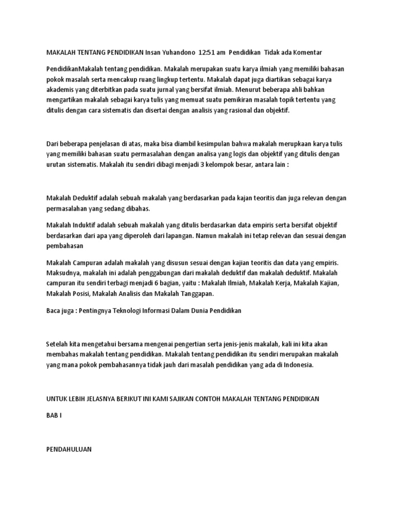 Contoh Makalah Karya Ilmiah Tentang Pendidikan