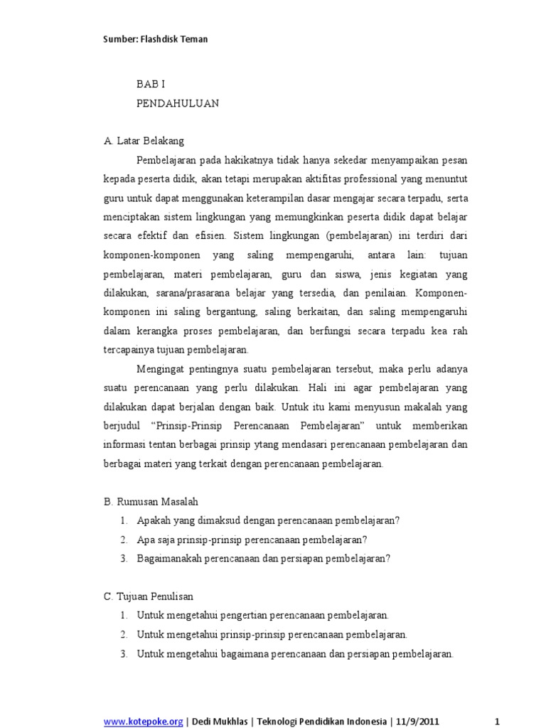 Contoh Makalah Perancangan Pembelajaran