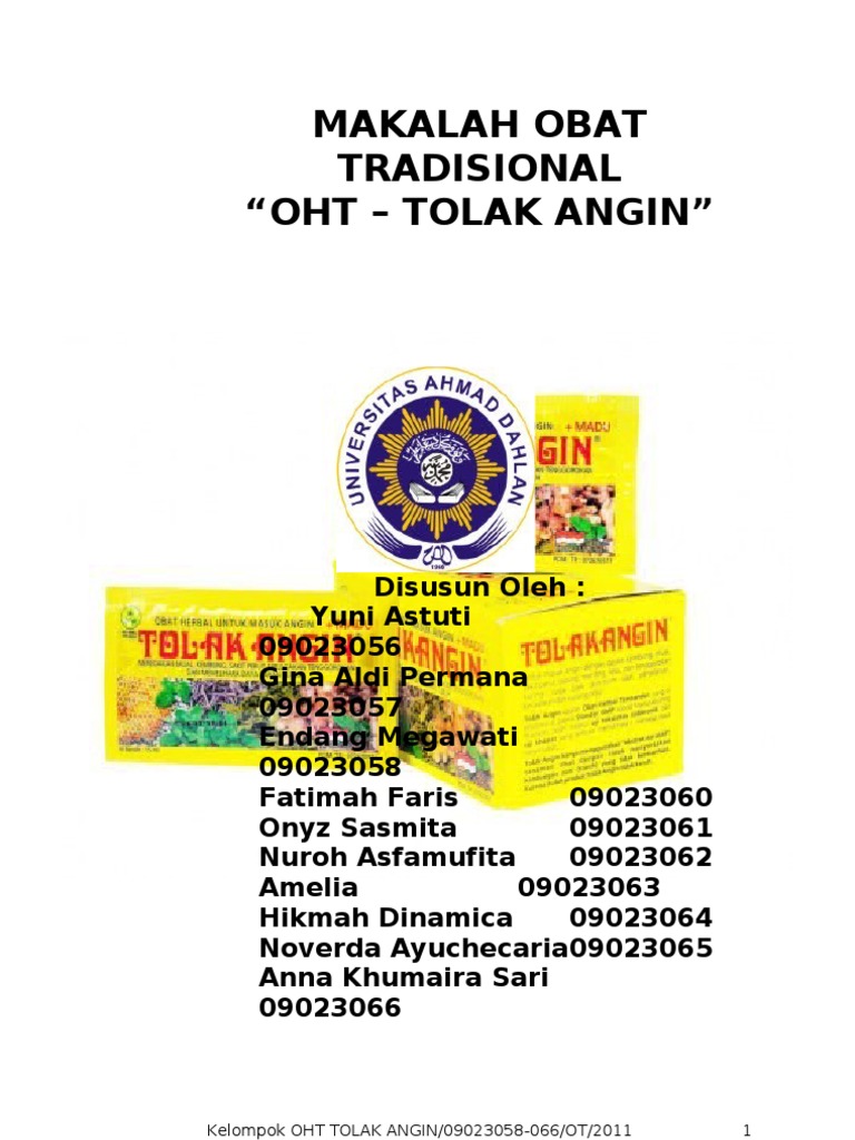 DOC) Makalah Pembuatan Obat Tradisional Menjadi Obat Fitofarmaka | Rahman Moenier - Academia.edu