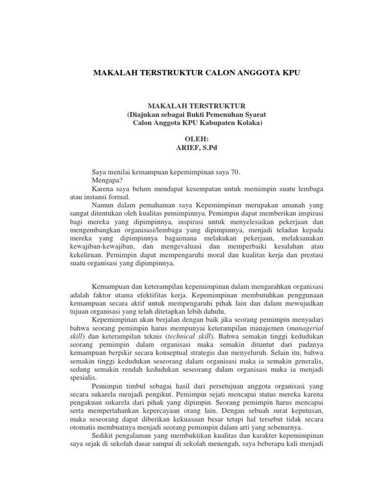 Contoh Makalah Terstruktur Calon Anggota Kpu Kabupaten