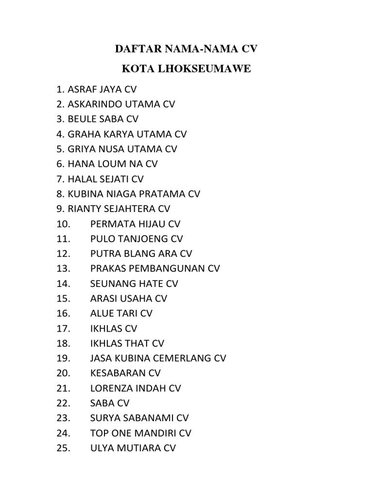Daftar Nama Nama Cv