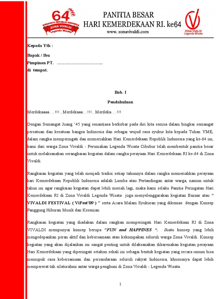 DOC) Format Proposal Kegiatan 17 Agustus 1945 | Aris Mahmudi - Academia.edu