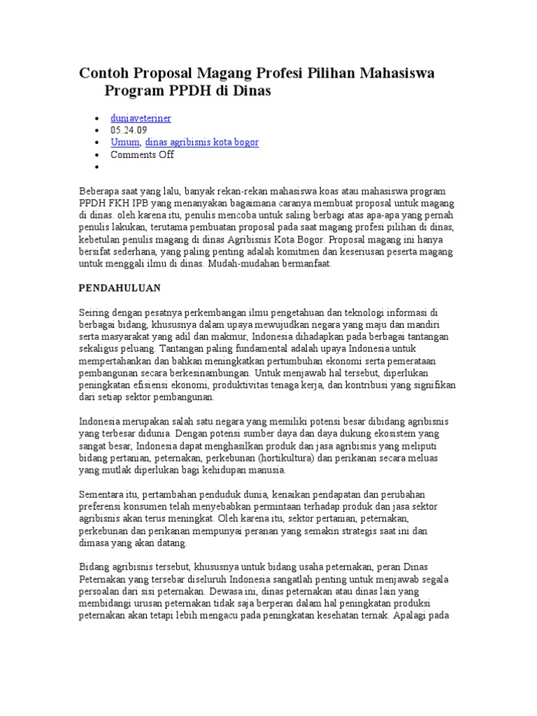 Contoh Proposal Magang Profesi Pilihan Mahasiswa Program PPDH Di Dinas