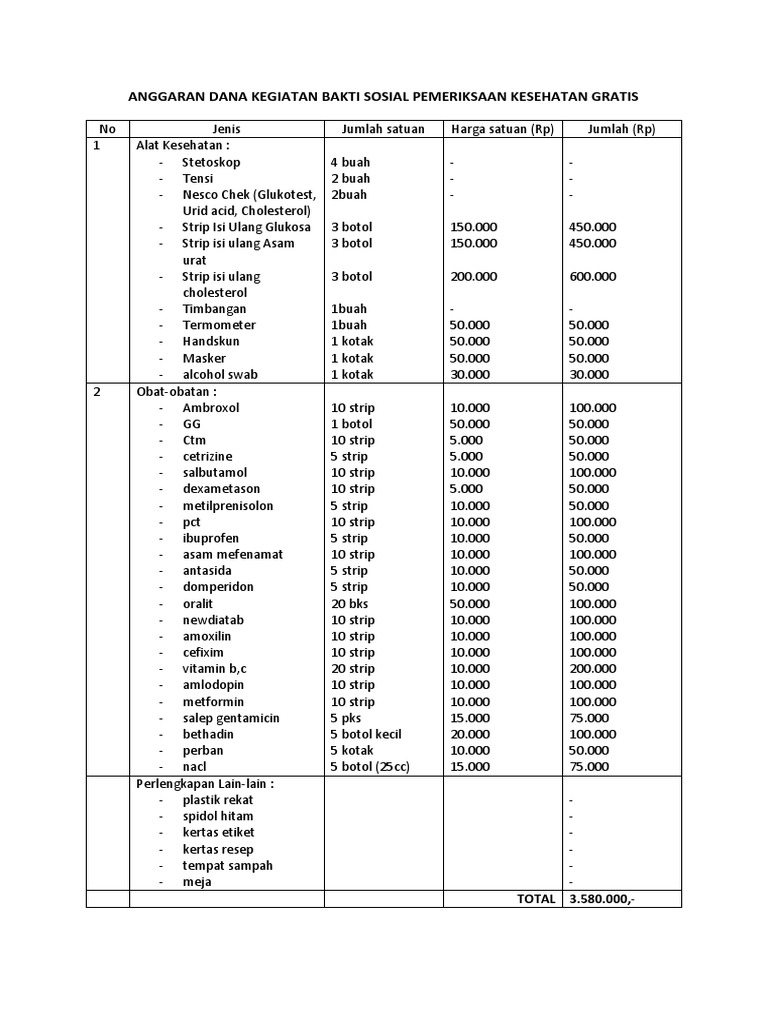 Anggaran Dana Kegiatan Bakti Sosial Pemeriksaan Kesehatan Gratis