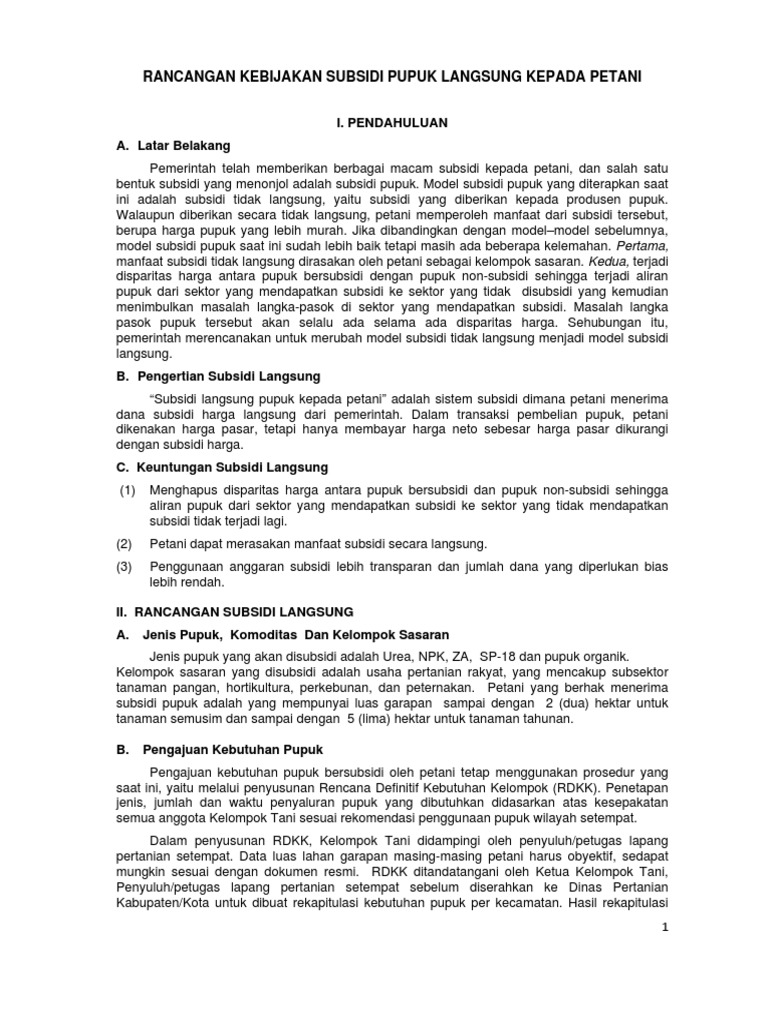 PDF) Urgensi dan Opsi Perubahan Kebijakan Subsidi Pupuk