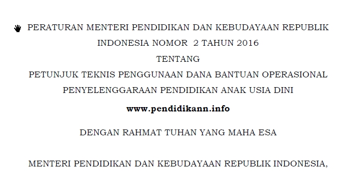 Juknis Penggunaan Dana BOP PAUD pada Permendikbud Nomor 60 Tahun 2016 - Berkas Edukasi
