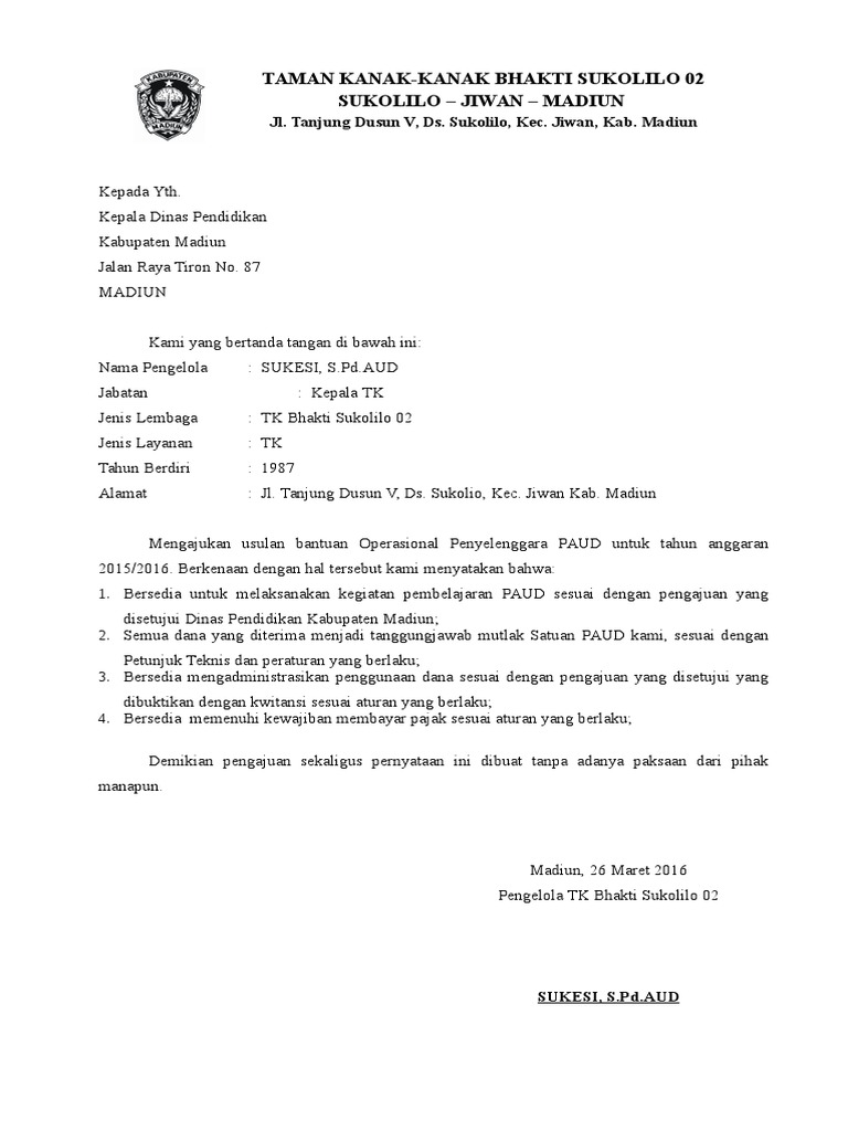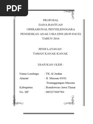 PROPOSAL USULAN PERMOHONAN PENGAJUAN BANTUAN OPERASIONAL PAUD TAHUN PDF Free Download