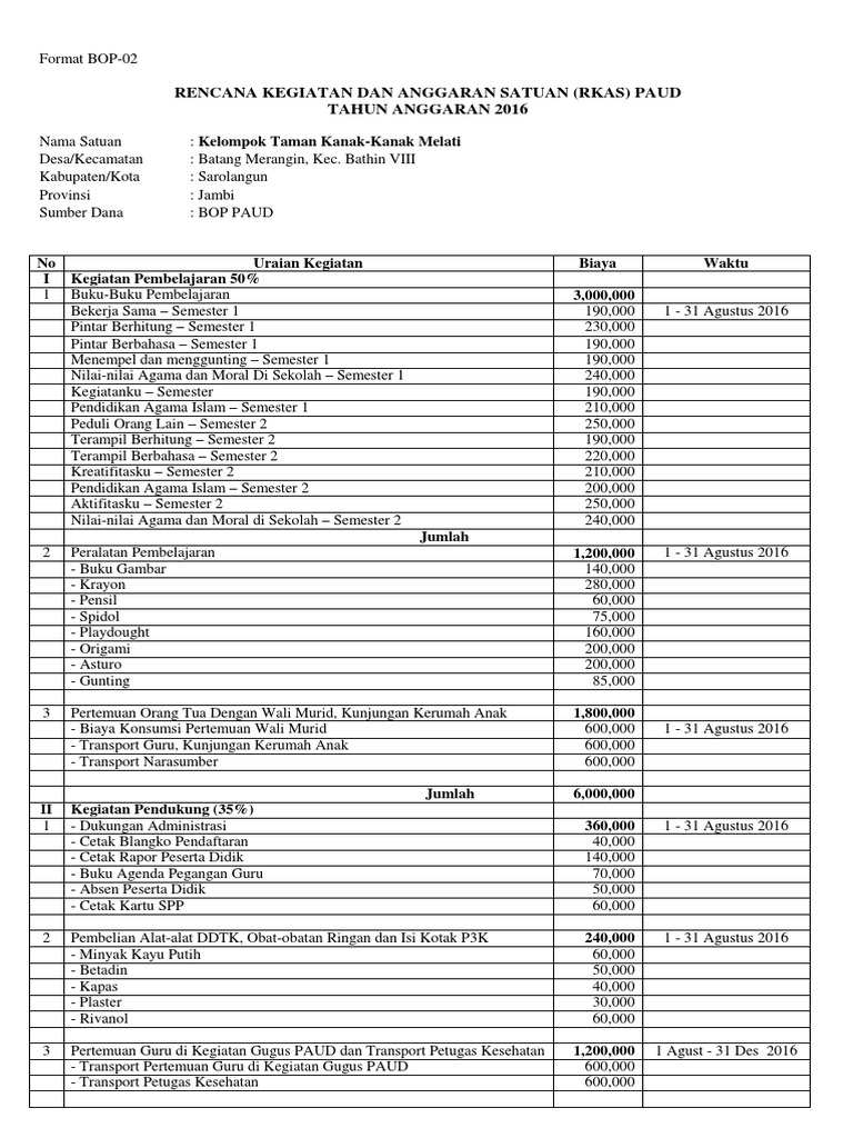 Contoh Usulan Bop Paud Tahun 2020 2020 Lengkap | | blog. paperplane