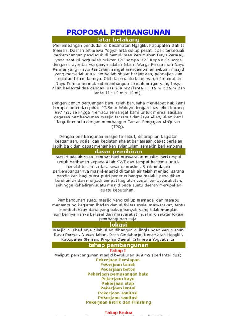 Contoh Proposal Pembangunan Masjid