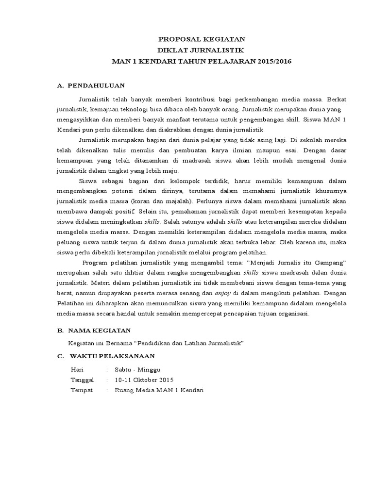 DOC) Contoh Proposal Pelatihan Jurnalistik | Bahrun Ali Murtopo - Academia.edu