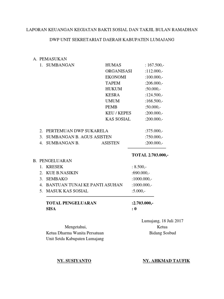 Contoh Laporan Pertanggungjawaban Kegiatan Bakti Sosial - Kumpulan Contoh Laporan